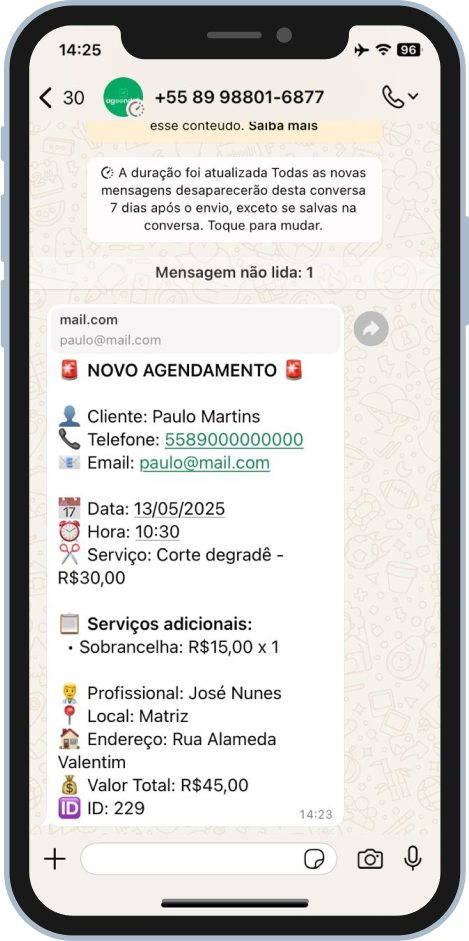 Tenha controle total da sua agenda, com notificações em tempo real no WhatsApp.