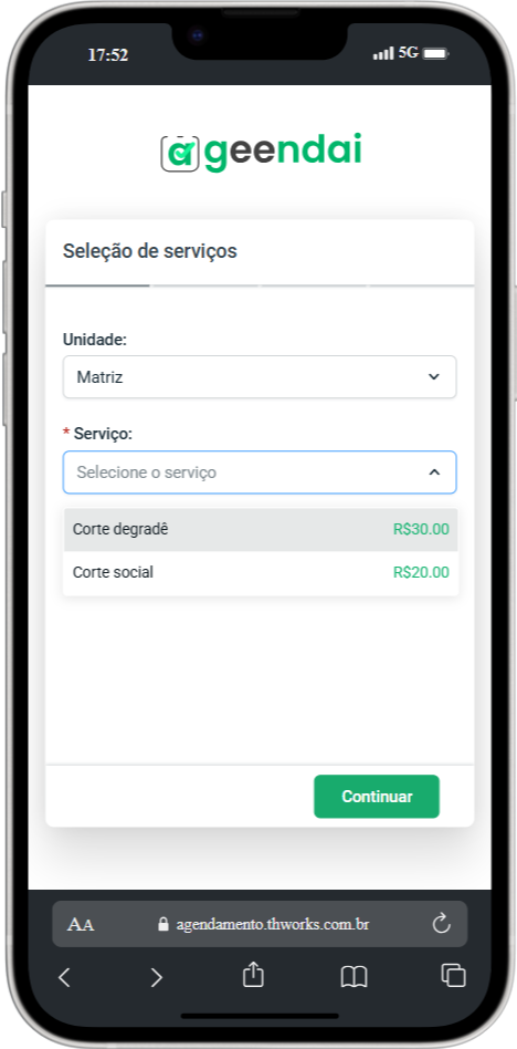 Agendar nunca foi tão simples: escolha o serviço, o horário e pronto, tudo em poucos cliques!